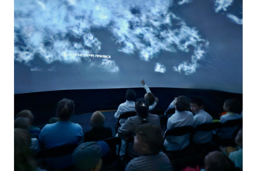 В рамках первого занятия ребята погрузились в удивительный мир космоса, посетив сеансы в мобильном планетарии. Они узнали много нового о звездах, планетах и далеких галактиках, а также получили первые знания о покорении космического пространства.